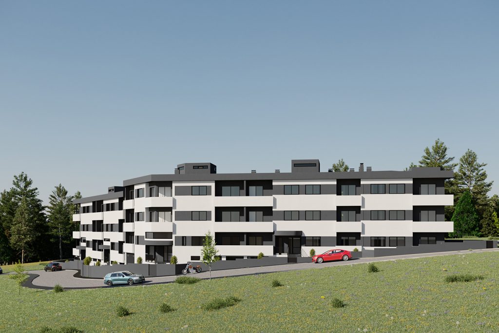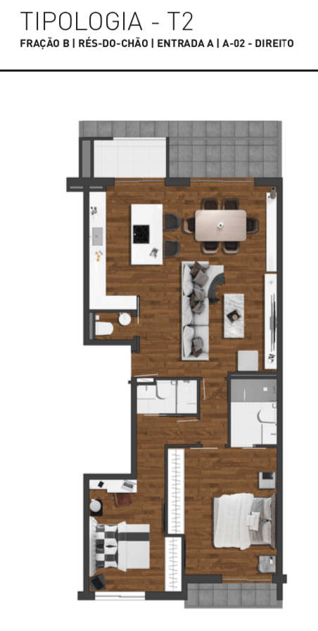 1 - Planta geral; 2 - Vista 3D da planta; 3 - Perspetiva geral do empreendimento