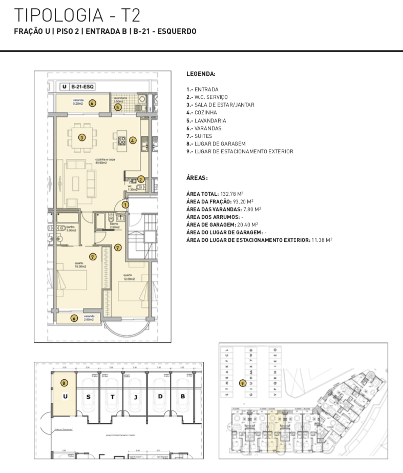 1 - Planta geral; 2 - Vista 3D da planta; 3 - Perspetiva geral do empreendimento